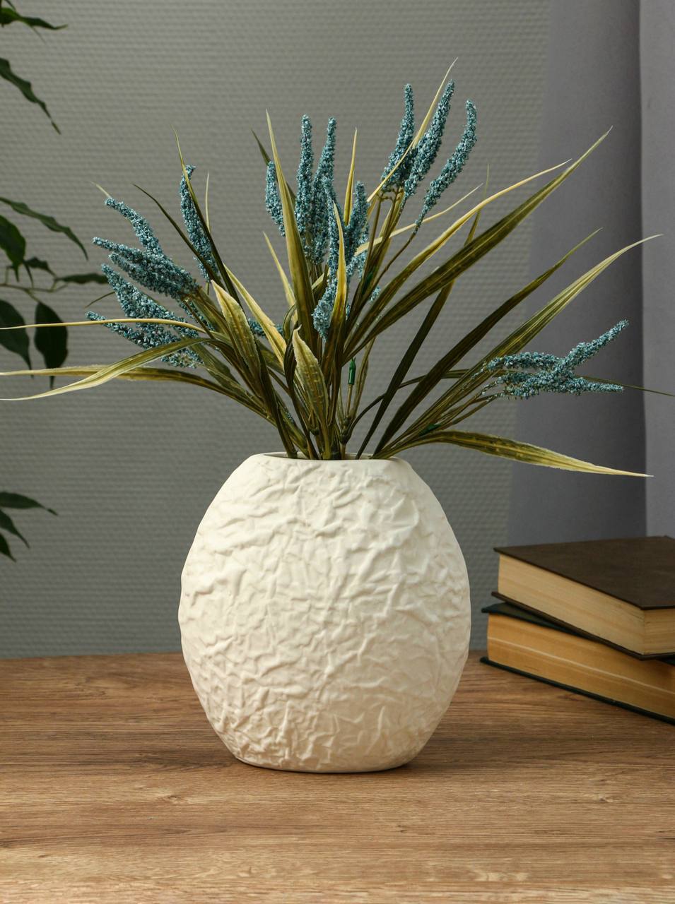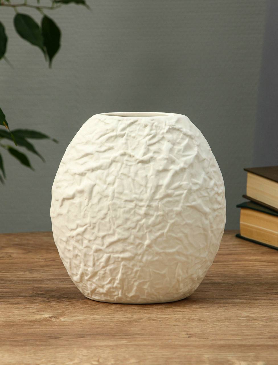The Crumen Vase embodies the beauty of imperfection through its organic, crinkled surface. Crafted in a soft matte white finish, its texture resembles delicate folded fabric or sculpted paper, making it a striking art object even without flowers. Minimalist yet bold, this vase complements both modern and wabi-sabi interiors, adding depth and character to any space. Its understated elegance makes it a timeless piece of contemporary décor.