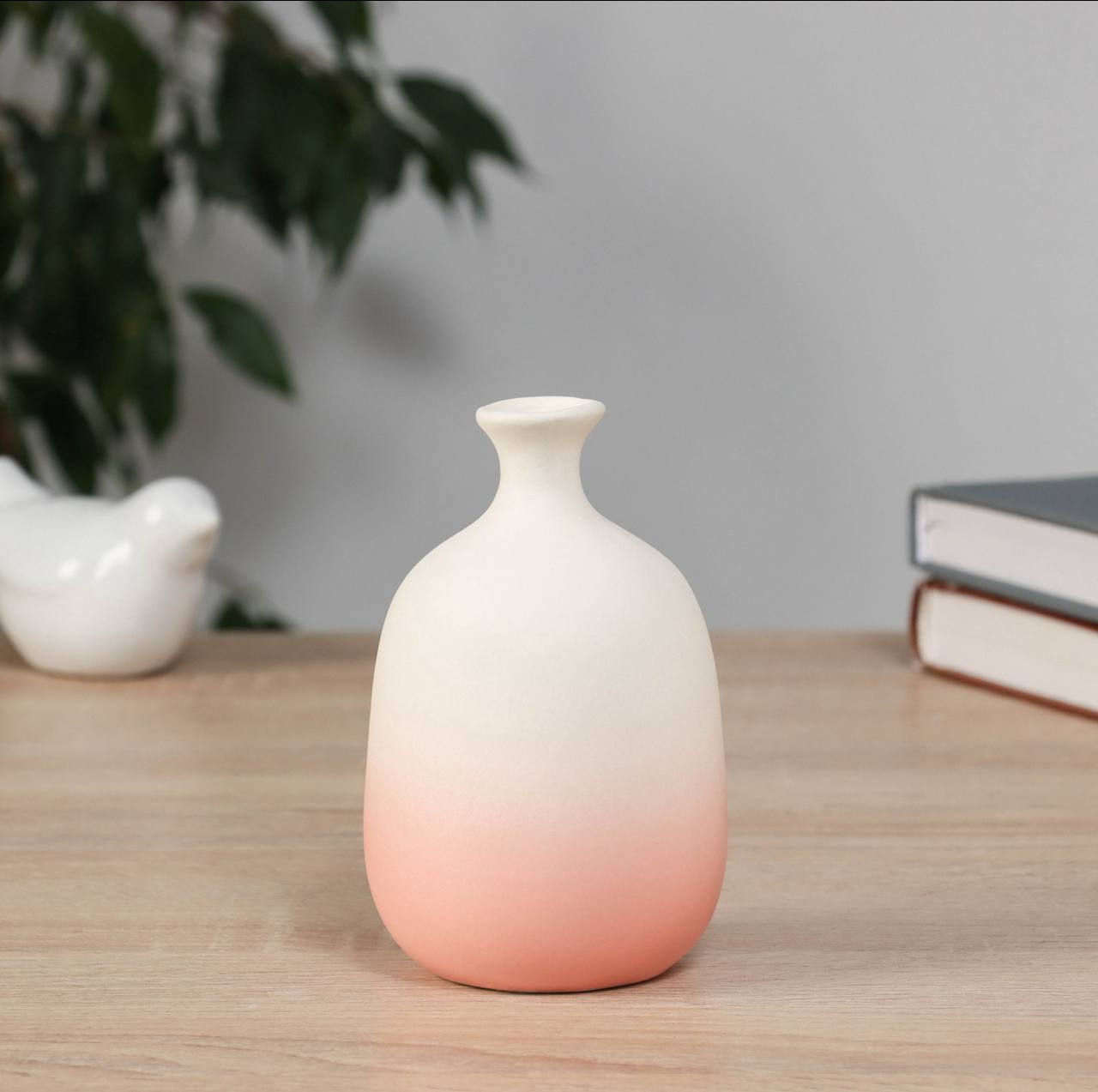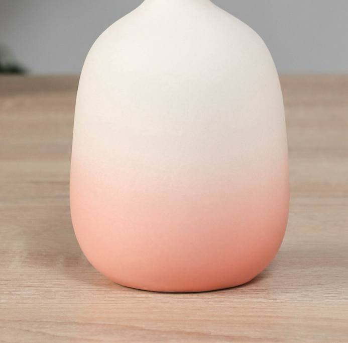 The Roselle Petite Vase embodies subtle elegance with its soft gradient from ivory white to blush pink. Its smooth, rounded form and delicate neck create a sense of balance and purity, making it perfect for displaying a single stem, a small bouquet, or standing alone as a decorative accent. This vase adds a gentle pop of color and sophistication to any interior, blending modern minimalism with timeless charm.
